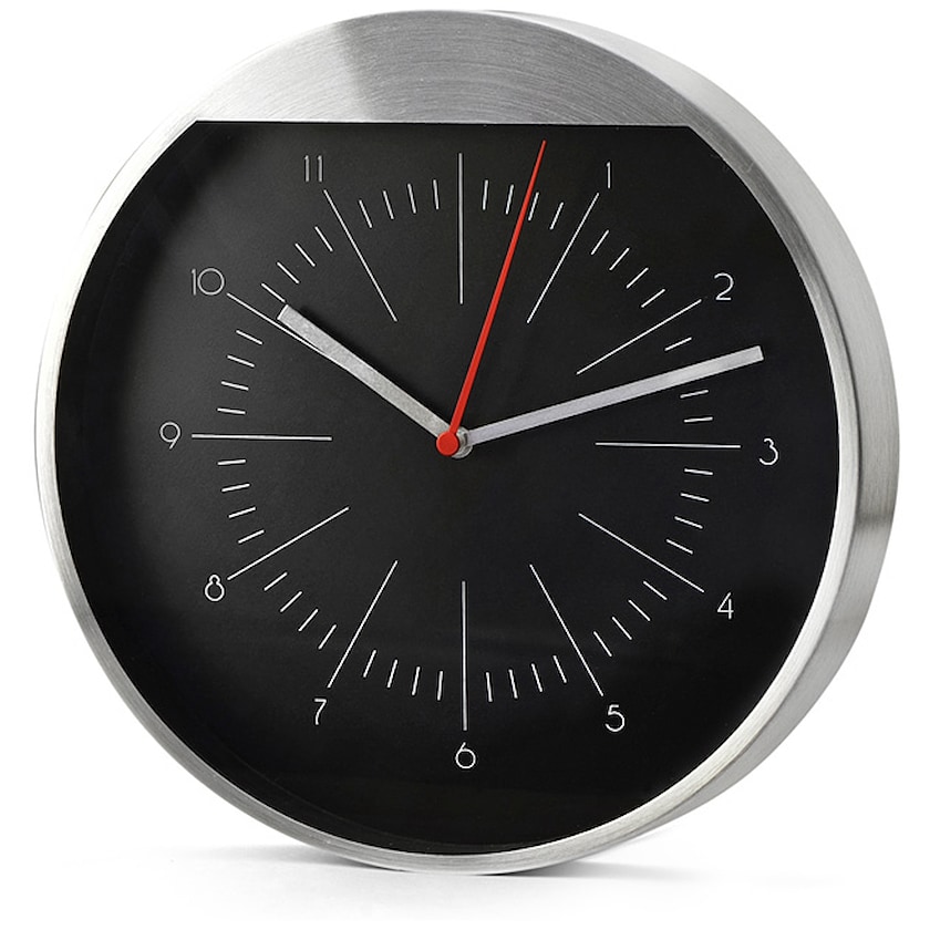Metallklocka med en ren och futuristisk design. Märkning sker med lasergravyr på den övre metallkanten. Drivs med 1 st AA-batteri (ingår ej).