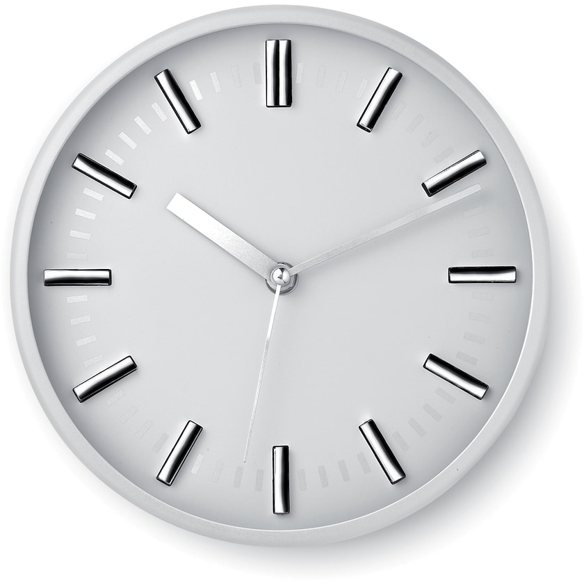 Rund, silverfärgad väggklocka i modern design. Drivs med 1 st AA-batteri (ingår ej).