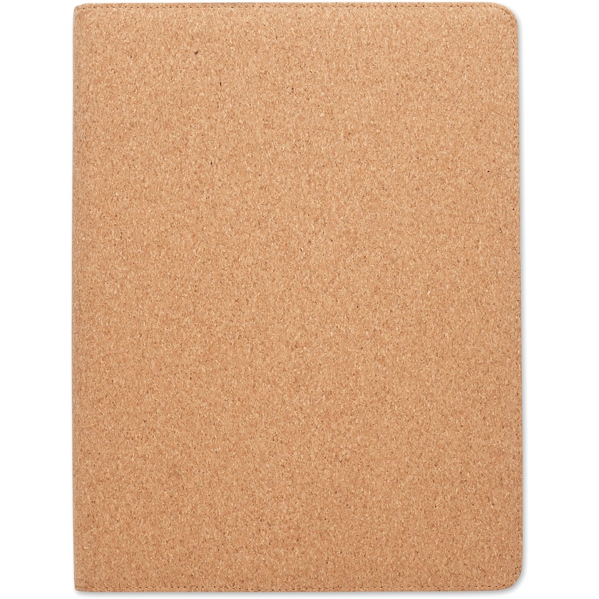 Konferensmapp i A4-storlek med omslag av äkta kork. Invändigt finns en anteckningsblock med 30 linjerade blad av återvunnet papper. En matchande penna medföljer.