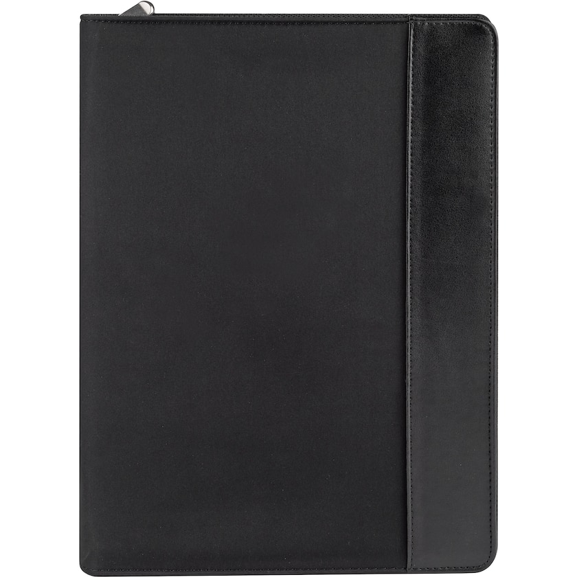 Konferensfolder i A4-format med dragkedja. Invändigt finns två USB-hållare, en liten förvaringsficka, hållare för en kulspetspenna samt ett anteckningsblock. Anteckningsblocket är löstagbart och kan därmed bytas ut när det är slut.