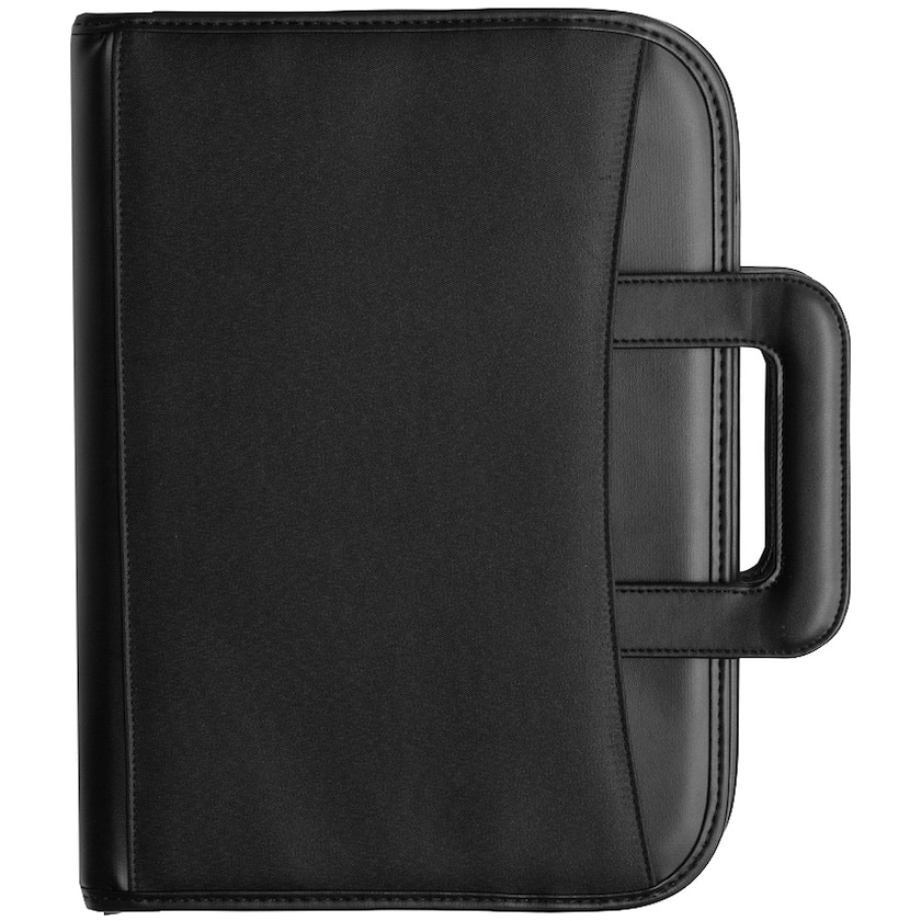 Konferensmapp med integrerade handtag. Levereras med skrivblock.