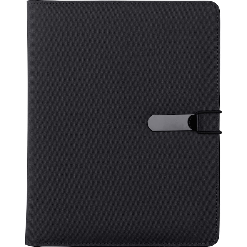 Konferensmapp i A5-format av miljövänlig rPET. Invändigt finns ett skrivblock med 64 linjerade blad av FSC-certifierat papper. Märkning kan antingen ske med 1-färgstryck eller lasergravyr.