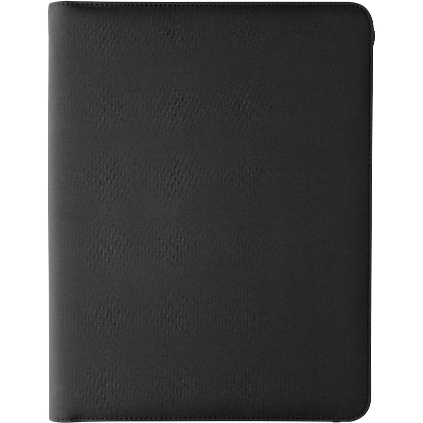 Påkostad konferensmapp av återvunnen polyester. Invändigt finns ett skrivblock med 20 linjerade blad av återvunnet papper samt en mobilficka, visitkortsfickor och ytterligare fler smarta fack och fickor. Konferensmappen hålls stängd med en dragkedja.