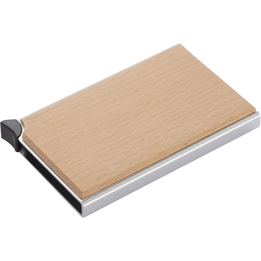 Kreditkortsfodral med RFID-skydd. Hermione är tillverkad av aluminum och trä och rymmer 6 kreditkort. Levereras individuellt förpackad en brun papplåda.