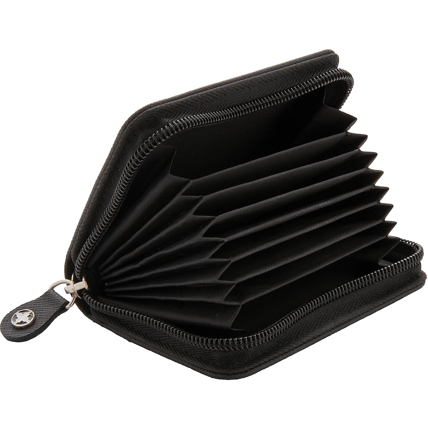 Elegant korthållare från Swiss Peak. Korthållaren rymmer upp till 10 kort. Korten är helt skyddade mot skimming tack vare RFID-skydd.
