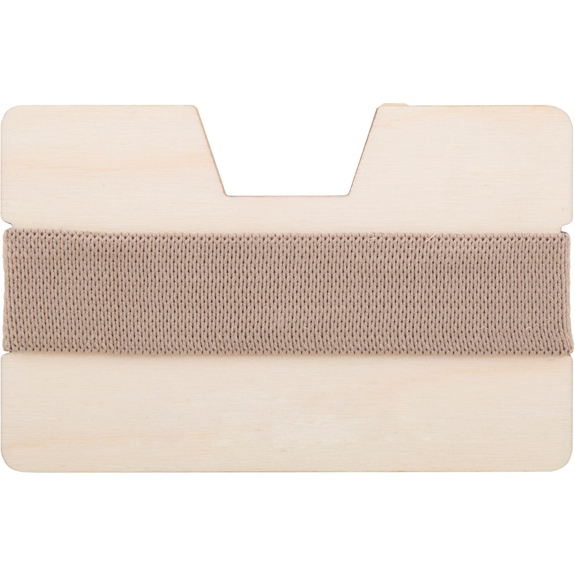 Kreditkortshållare av äkta trä. Korten hålls på plats med ett elastiskt band. Naturligt är vackert!
