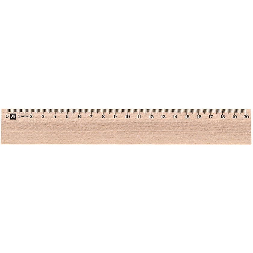 20 cm trälinjal av högsta kvalitet. Linjalen är tillverkad av finaste bok och passar för professionellt bruk eller för skolor.