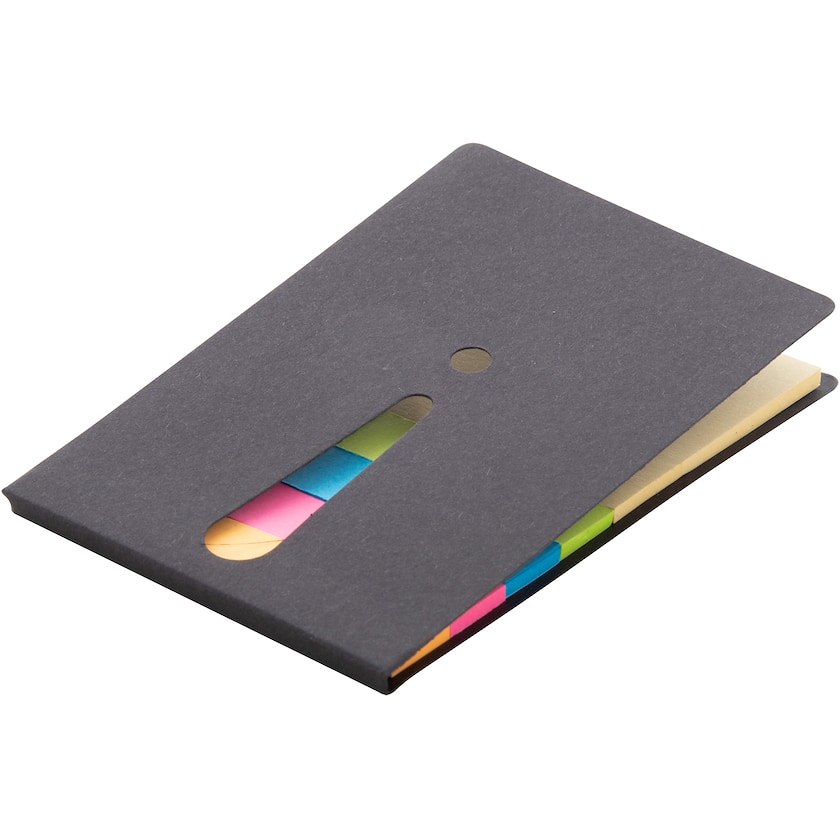 Set med notisblock och färgglada märkflikar. Setet innehåller 100 st märkflikar i fyra olika färger samt 25 st gula notisblad. På framsidan finns ett utstansat utropstecken.
