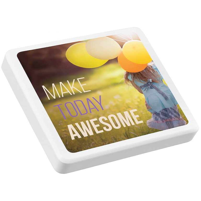 Stort suddgummi med digitaltryck. Mega är tillverkat av återvinningsbart TPE-material som är helt fritt från PVC-mjukgörare. Hela ovansidan trycks med digitaltryck vilket gör att det finns gott om plats för ditt reklambudskap.