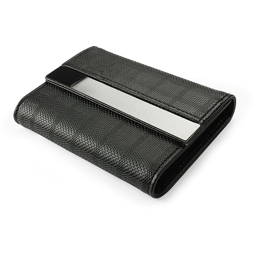 Elegant visitkortsfodral i konstläder med plats upp till 20 kort. Märkning sker med lasergravyr på metallplattan på framsidan.