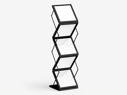 Broschyrställen finns i flera olika utföranden, men gemensamt för dem alla är att de inte kräver någon montering med verktyg. Oftast kan de bara fällas upp som de är. Allt du behöver göra är att fylla den med broschyrer.