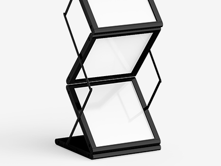 Vår populära broschyrhållare av serien Flex är dubbelsidig. Det innebär att du har fack på båda sidor vilket maximerar exponeringen av dina broschyrer.