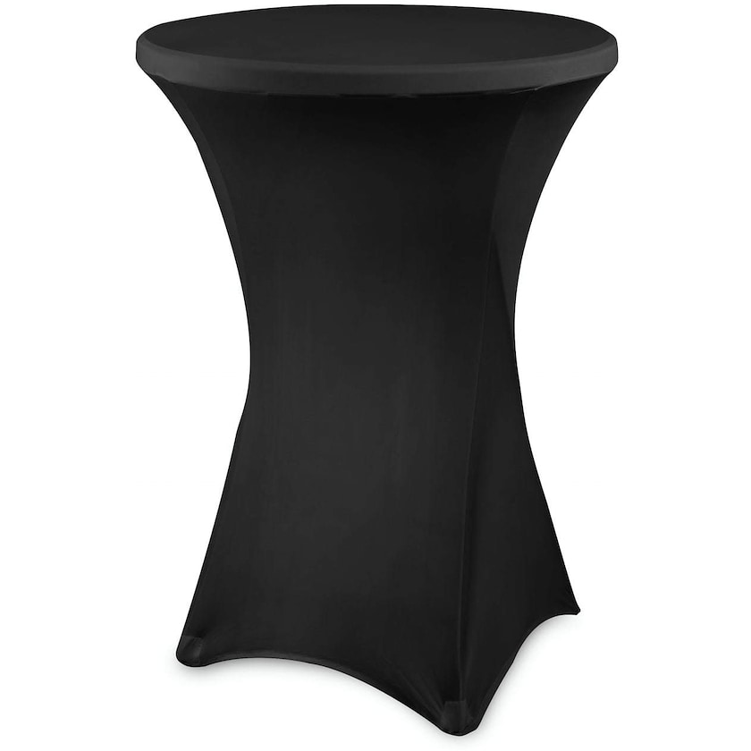 Ståbord med svart tygöverdrag. Det nattsvarta tygöverdraget ger bordet ett effektfullt utseende. Bordet är vikbart vilket gör det både lätt att transportera och förvara. Bordet är utrustat med ett lås som förhindrar att det fälls ihop av misstag. Bordsskivan har 80 cm diameter och är gjord av tålig polyeten. Benen är tillverkade av pulverlackad metall och har fötter som förhindrar repor på golvet. 1 års garanti. Minsta antal är 5 st.