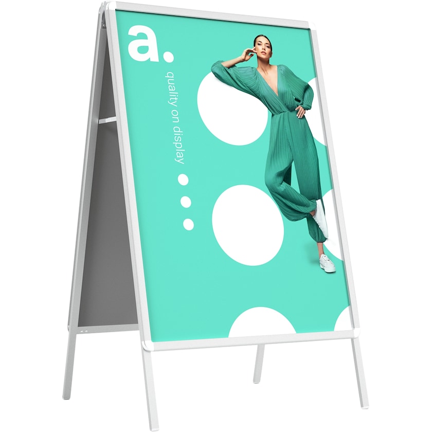 Stor gatupratare av robust anodiserat aluminium. Next 84 använder en smart Open-In-Open-Zip-teknik där du lätt byter motiv. Tekniken gör att gatuprataren är lätt att öppna och därmed att byta motiv. Trycket skyddas av en reflexfri film som ger overträfffad synlighet åt motivet. Motivet motsvarar storlek A0.