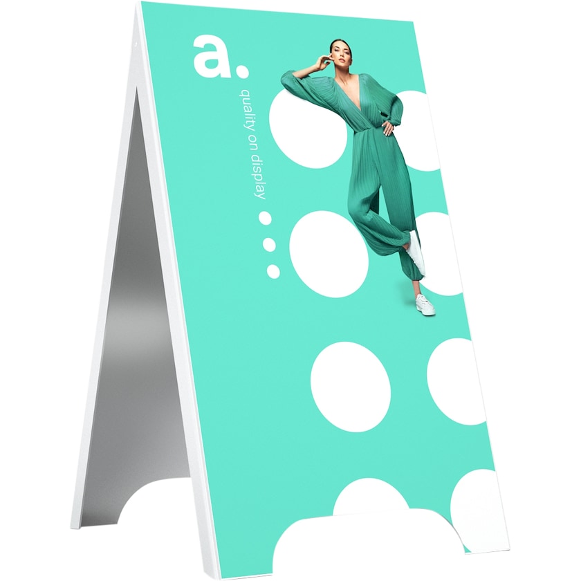 Modern gatupratare av tålig polystyrene. Både själva gatuprataren och trycket klarar år av användning. Utomhusbruk är inga problem. Trycket sker på båda sidor och skyddas av laminering.