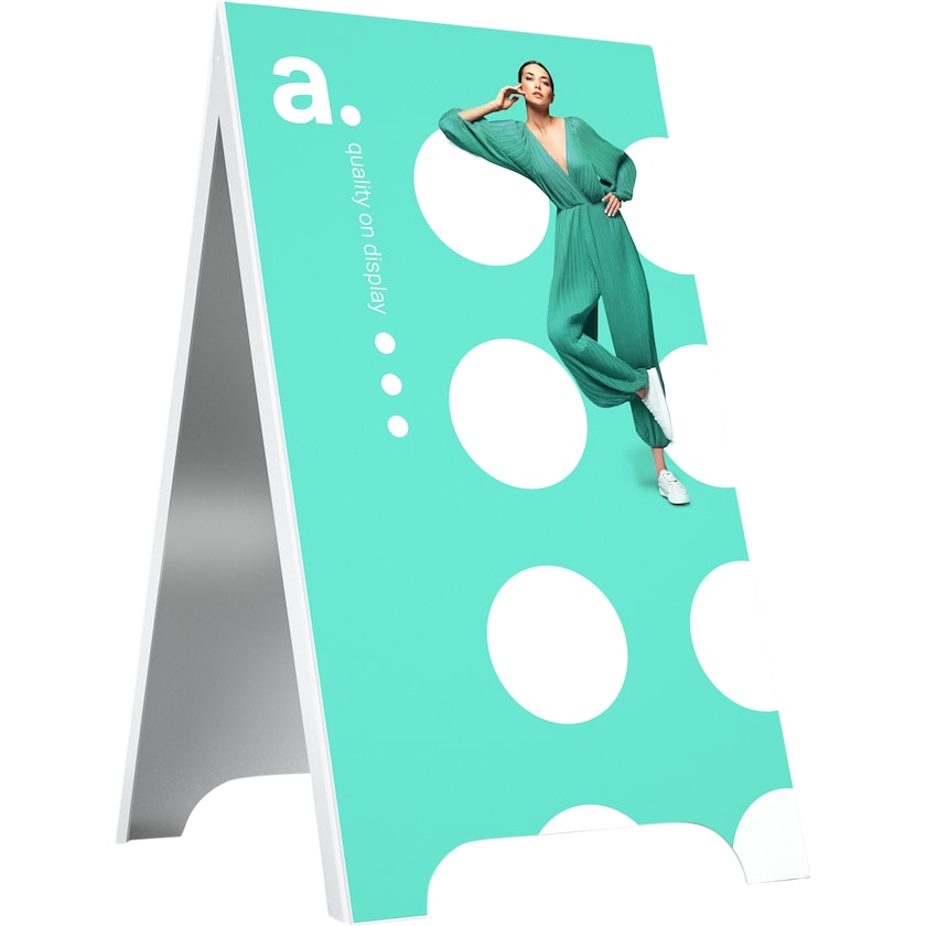 Snyggt designad gatupratare av tålig polystyrene. Både själva gatuprataren och trycket klarar flera års bruk. Användning utomhus är inga problem. Trycket, som skyddas av laminering, sker på båda sidor av gatuprataren.
