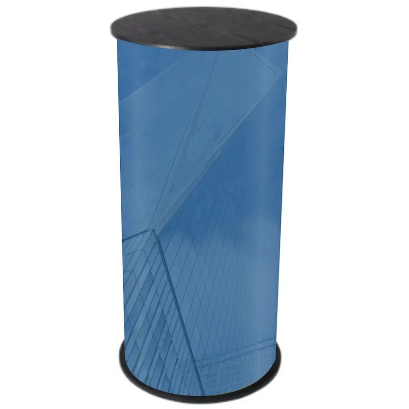 Runt mässbord i kompakt format till lågt pris. Expo Round består av en bordsskiva av trä och en nederdel av kardborretäckt PVC. Trycket sker på en laminerad film som placeras över hela nederdelen. Den laminerade filmen kan antingen vara blank eller matt. Bordet tar liten plats vilket gör att det passar bra när golvytan är begränsad. Väska medföljer.
