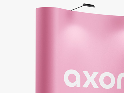 Pop-up-väggar har en konstruktion av aluminiumribbor på vilken tyget fästs med magnetband. Detta är vår mest populära typ av mässvägg.