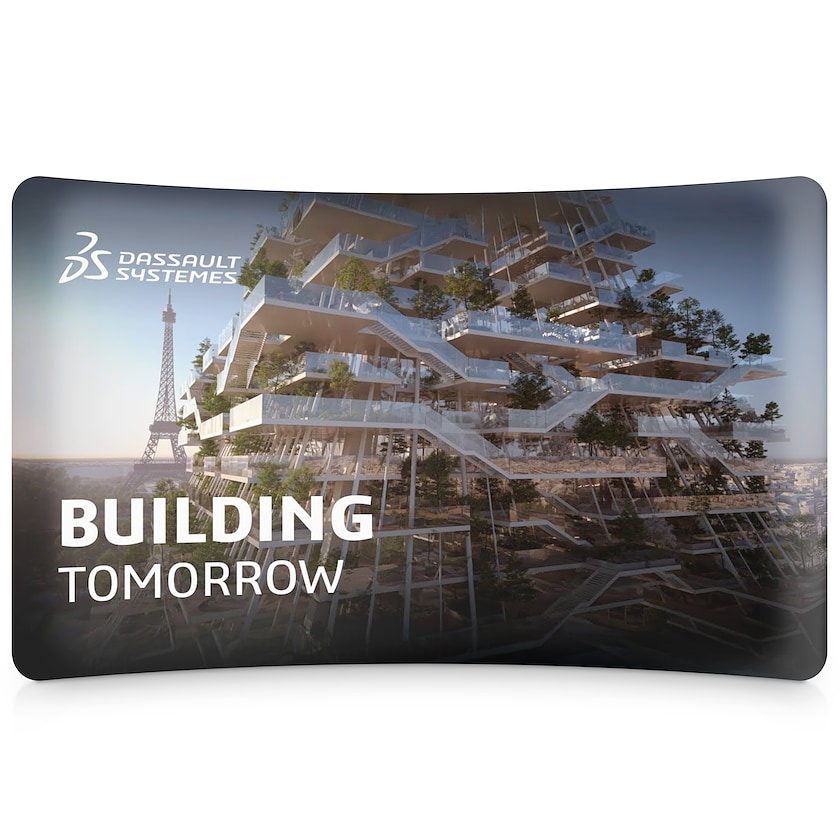 Lätt svängd softwall med tryck. Denna typ av mässvägg består av en rörram av aluminiumsektioner som lätt sätts ihop. Det medföljande tyget träs över rörramen vilket ger en mjukt formad mässvägg. Monteringen kräver inga verktyg. Tyget går att byta ut vilket gör mässväggen extra funktionell. Tryckpriset avser tryck på framsidan. 5 års garanti på rörramen.