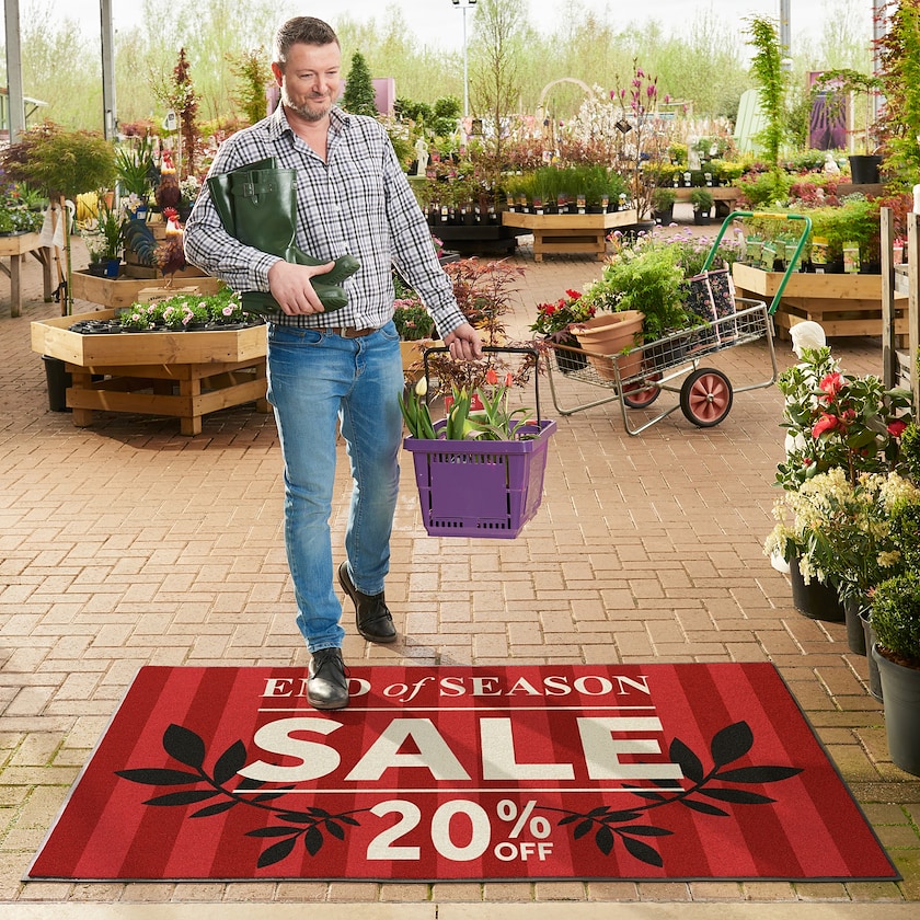 Matta med tryck av hög kvalitet. Mattan har en bas av svart nitrilgummi och är mycket slitstark. När mattan blir smutsig kan den antingen spolas av eller maskintvättas i upp till 60 grader. Mattan är endast avsedd för inomhusbruk. 2 års garanti. Trycket sker i någon av de 45 standardfärger som visas som detaljbild. Produktpriset inkluderar tryck i max 20 av dessa färger.