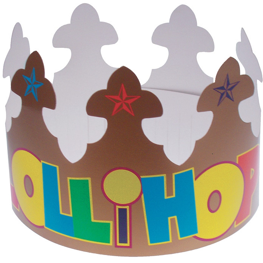 Leksakskungakrona med tryck. Tillverkad av miljövänlig papp som är återvunnen till 95%. Kungakronorna levereras utstansad, men i platt format. Trycket sker endast på utsidan.