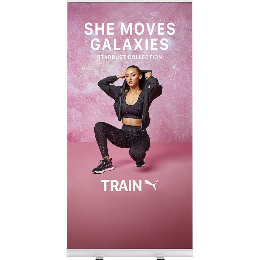 100 cm bred rollup med förstärkt konstruktion. Denna rollup har förstärkt kassett samt ben vilket gör rollupen tyngre och stabilare. Tyget är av typen Blockout PET 330 g/m² vilket är ett högkvalitativt tyg med mjuk matt yta som blockerar ljus och ger oöverträffad färgåtergivning. Trycket sker digitalt med avancerad UV LED-teknologi och europaproducerade ekologiska färger. Konstruktionen är tillverkad av anodiserad aluminium vilket ger en mycket stark konstruktion. Tyget har måtten 200 x 100 cm. Levereras med en väska med extra vaddering. 1 års garanti.