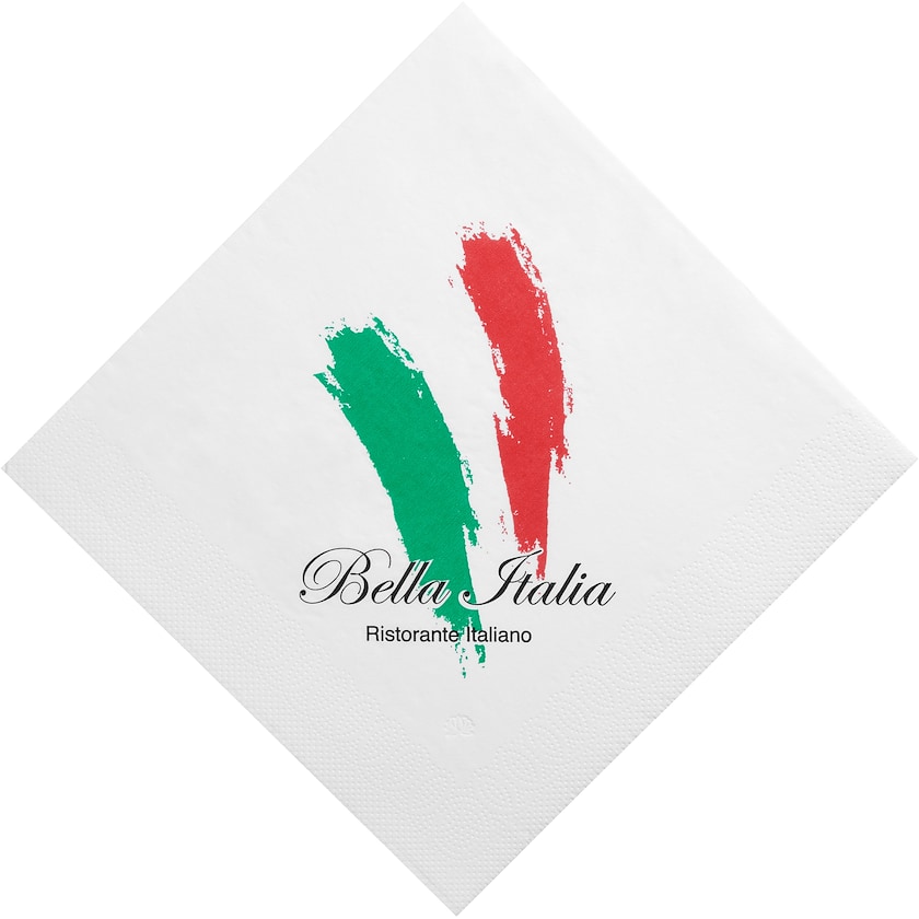 Vit 3-lagers middagsservett från välkända servettillverkaren Tork. Servetten levereras 1/4-vikt och har då måtten 19,5 x 19,5 cm. När servetten är fullt utvecklad har den måtten 39 x 39 cm. Hela ovansidan trycks efter dina önskemål. Servetten passar måltider i enklare miljöer och ger då gästen en mer exklusiv känsla. Servetten är miljömärkt med EU Ecolabel, vilket innebär att den är producerad av återvunnen fiber från 100% hållbart förvaltade skogar. Den är även Food contact approved 4764801. Priserna är angivna i enheter om 1200 st.