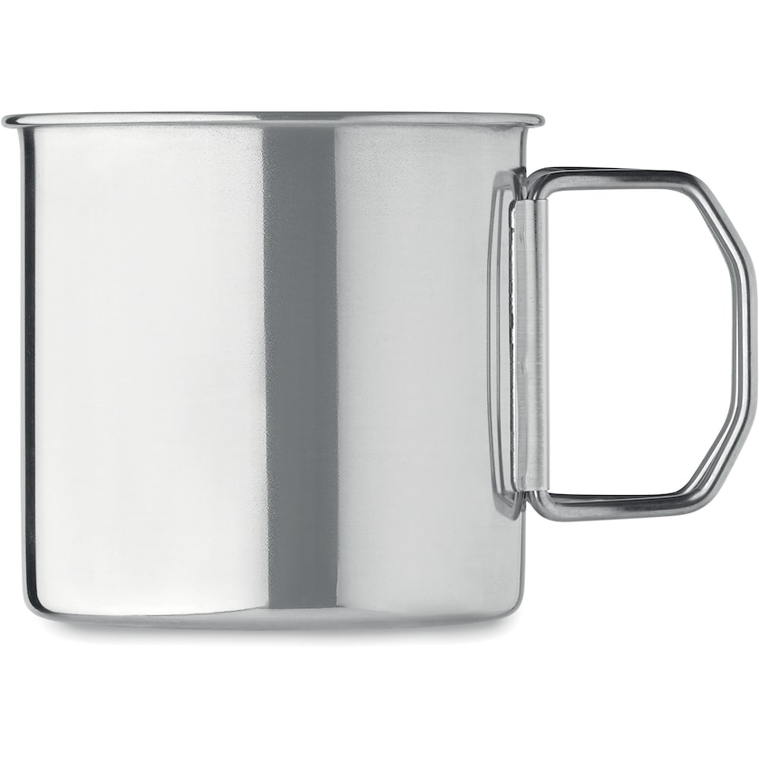 Metallmugg av rostfritt stål med vikbart handtag. Jonestown har enkla väggar och rymmer 33 cl. Märkning sker med lasergravyr.