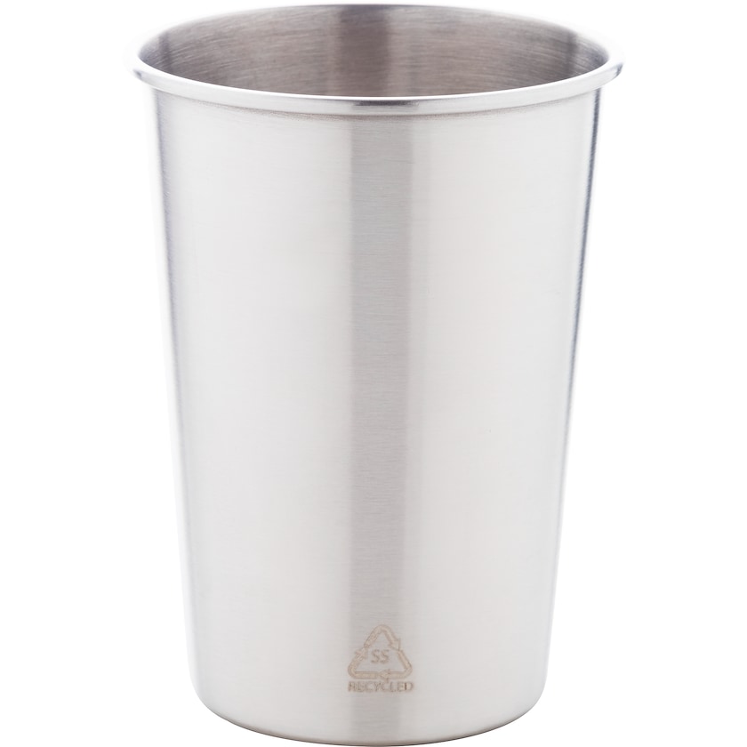 Metallmugg av återvunnet rostfritt stål. Muggen har enkla väggar och rymmer 35 cl.
