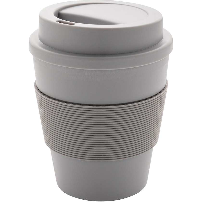 35 cl take-away-mugg med lock och grepp av silikon. Själva muggen är tillverkad av polypropen som kan återvinnas till 100%. Muggen kan användas i mikrovågsugn och diskmaskin.