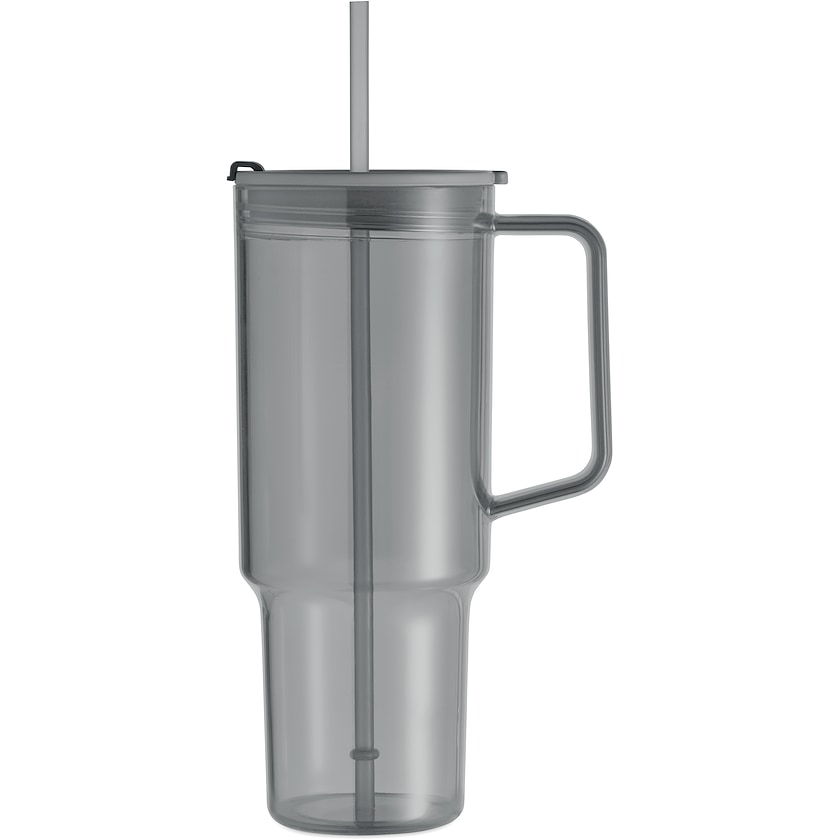 Plastmugg med handtag, lock och sugrör. Muggen rymmer hela 120 cl och är tillverkad av miljövänlig rPET.