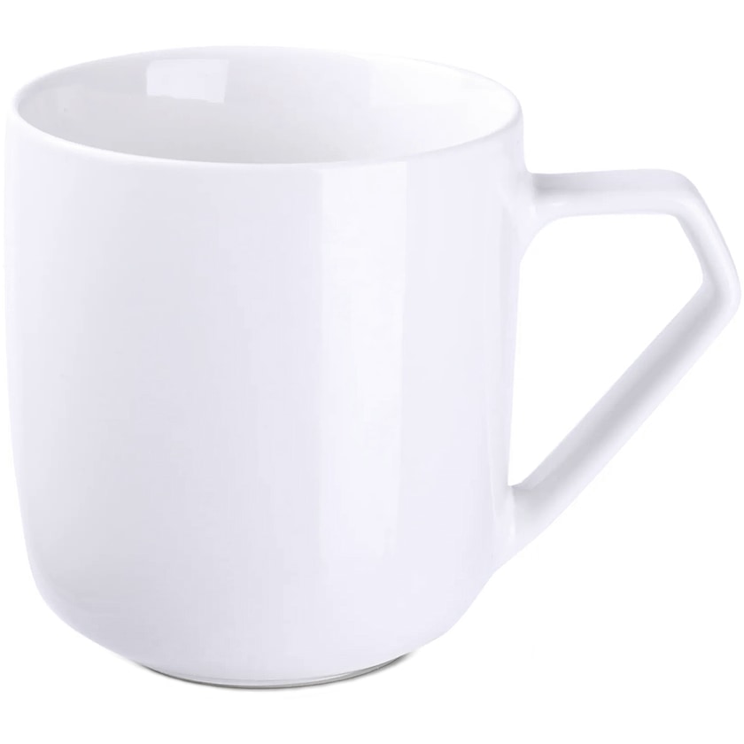 Porslinsmugg med tryck med unikt designat handtag. Biscaya har stor tryckyta vilket möjliggör avancerade tryck.