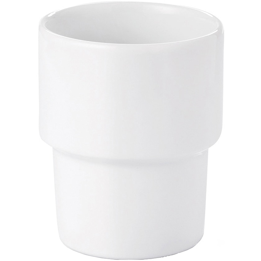 Stapelbar porslinsmugg med många tryckplaceringar. Förutom mot eller från den drickande så kan trycket även placeras på muggens undersida eller insida. Tack vare att muggen kan staplas blir den extra praktisk.