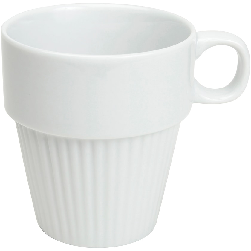 Stapelbar mugg av tålig fältspatporslin. Muggen tål både mikrovågnsugn och vanlig ugn. En snyggt designad mugg från kvalitetstillverkaren Exxent.
