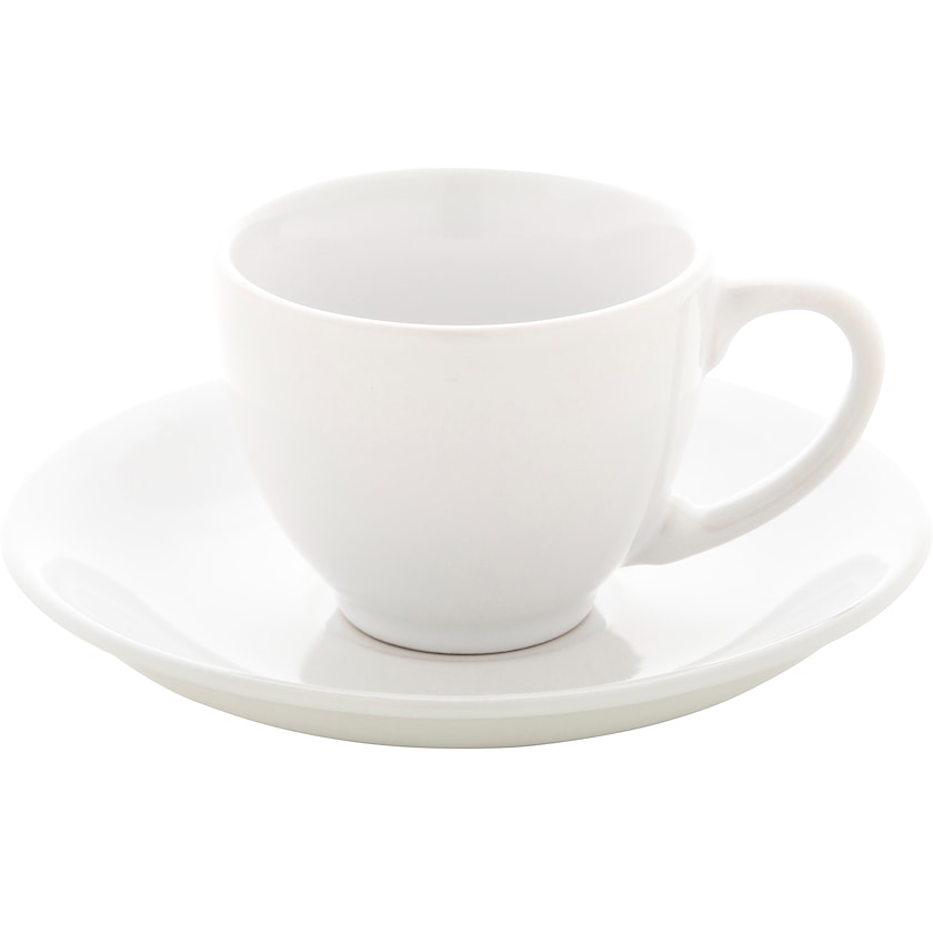 Cappuccinokopp med tillhörande fat. Urbino är tillverkad av äkta porslin och är en vacker kopp av klassiskt snitt. Levereras två och två i vita papplådor. Koppen rymmer 15 cl. Tryckpriset avser tryck på båda kopparna.