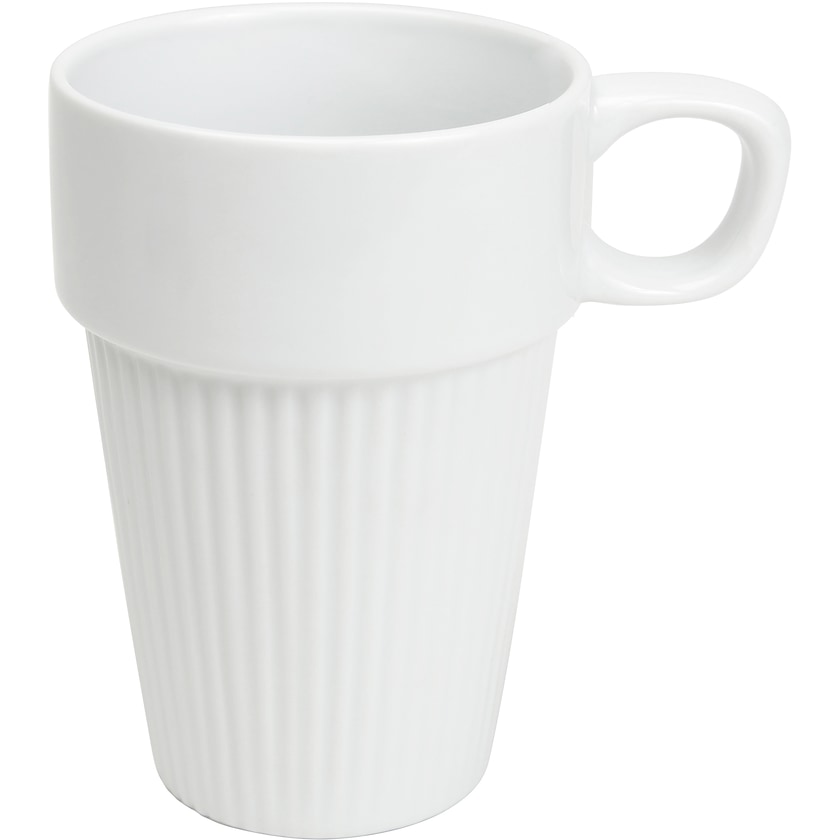 Stapelbar porslinsmugg med litet handtag. Muggen är tillverkad av slitstark fältspatporslin och tål användning i både ugn och mikrovågsugn.