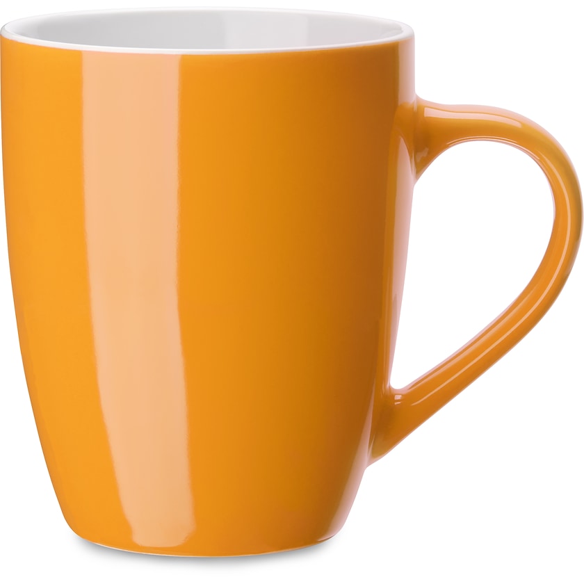 Elegant mugg med vit insida. Crema är en lite större mugg som rymmer 37 cl. Det är möjligt att trycka på muggens insida. Tryckytan på insidan är 40 x 10 mm (bredd x höjd).