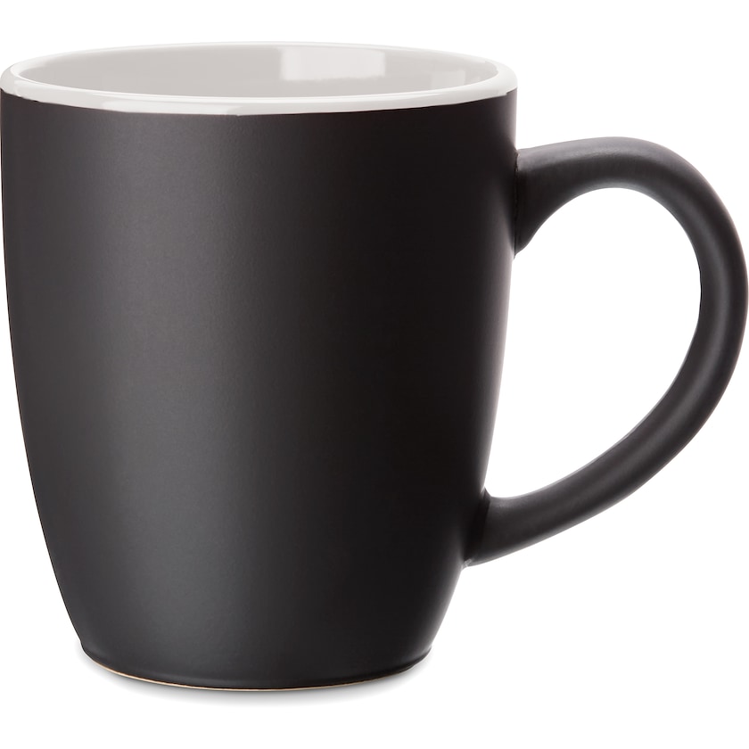 Elegant stengodsmugg med stort handtag. Utsidan är matt och insidan är blank.