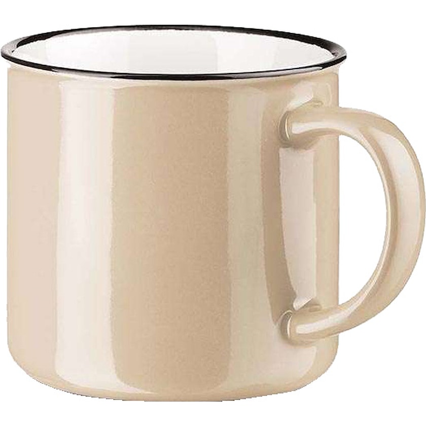 Stengodsmugg med retroinspirerad design. Designen har sökt inspiration från de klassiska emaljmuggarna. Muggen har stor tryckyta och finns i flera olika färger. Endast handdisk.