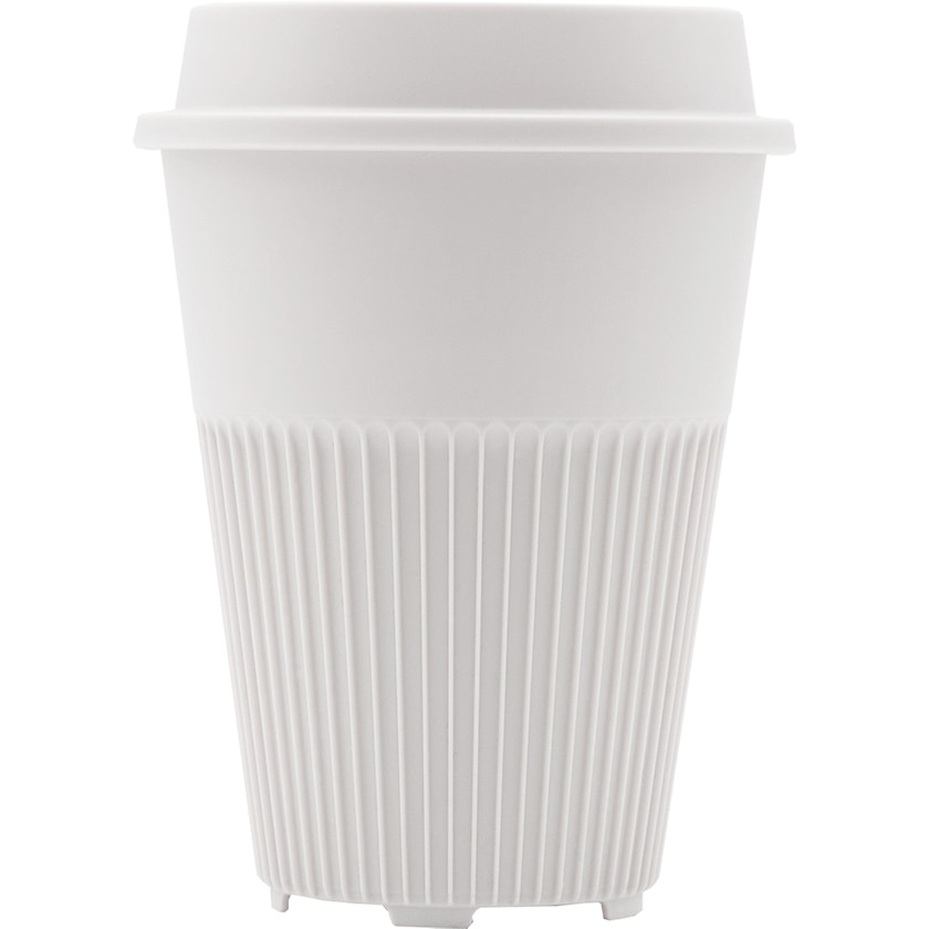 Take away-mugg från Circular & Co. Muggen är tålig, återanvändbar, stapelbar och helt återvinningsbar. Ribborna gör att muggen inte blir onödigt het och ger ett bra grepp. Botten är snabbtorkande. Locket har en smart dricköppning. Passar i bilens mugghållare såväl som i kaffemaskinen på jobbet. Livsmedelssäker och BPA-fri. Bör köras i diskmaskinens övre korg.