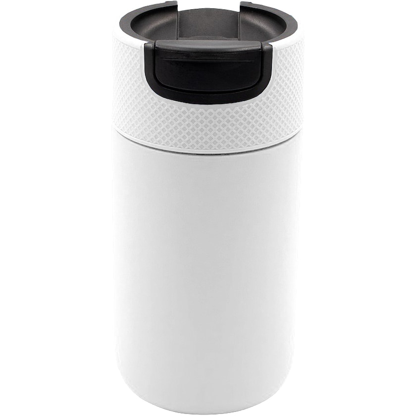 Termosmugg med rostfritt stål med matt ytfinish. Vakuumisolerad med dubbla väggar. Håller varm dryck varm i upp till 10 timmer. Kan öppnas med bara en hand. Läckagefri.