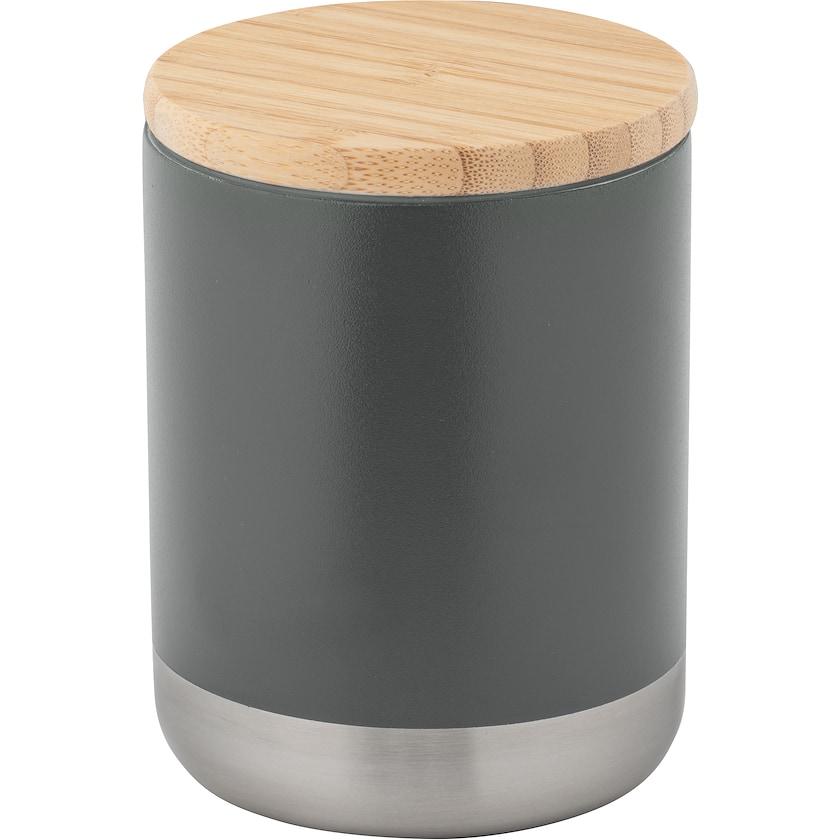 Termosmugg av rostfritt stål med unik design. Muggen har dubbla väggar med vakuumisolering med koppar. Locket är gjort av bambu. Håller dryck varm i 5 timmar och kall i 24 timmar. Märkning kan antingen ske med 1-färgstryck eller lasergravyr.