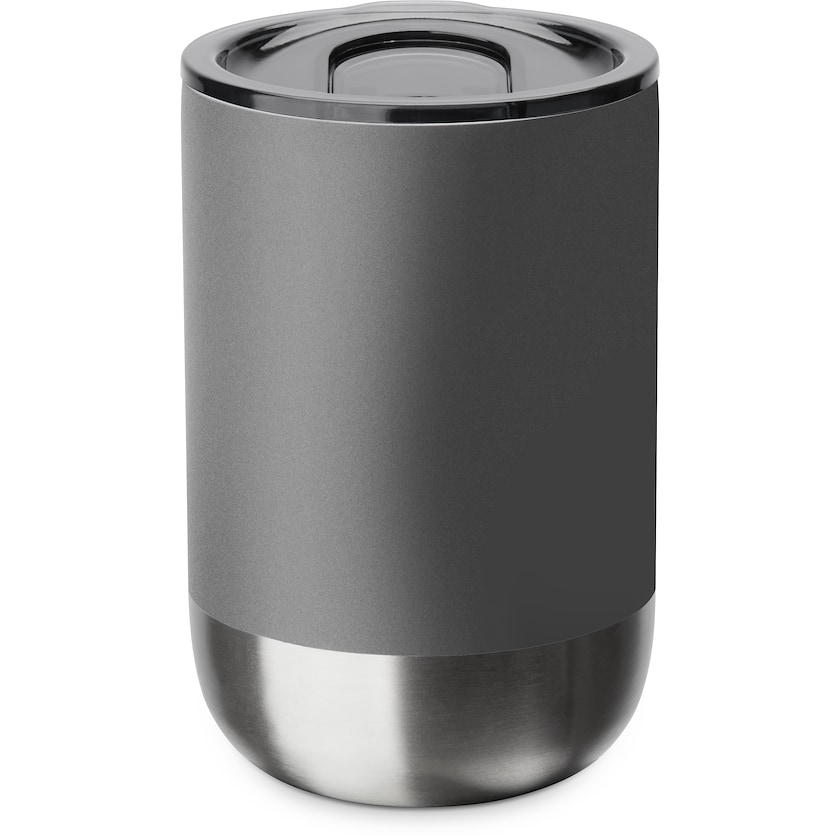 Mjukt formad termosmugg av återvunnet rostfritt stål. Dryck hålls varm i 3 timmar och kall i 6 timmar. Locket har en smart öppning som är spillsäker. Levereras i en presentlåda av FSC-certifierat papper.