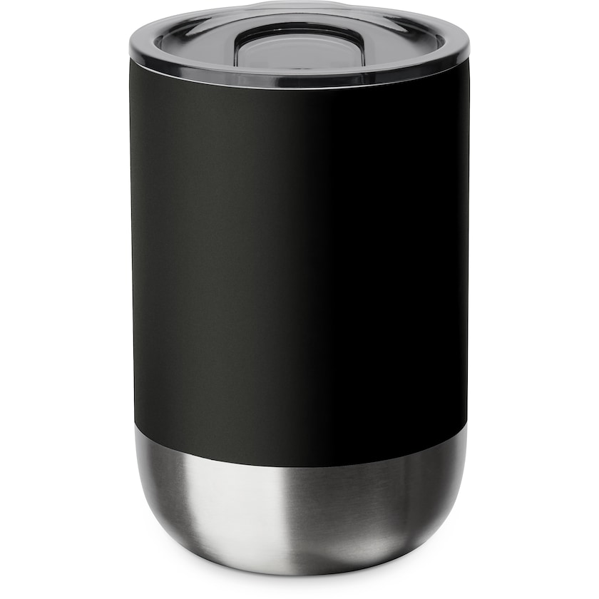 Mjukt formad termosmugg av återvunnet rostfritt stål. Dryck hålls varm i 3 timmar och kall i 6 timmar. Locket har en smart öppning som är spillsäker. Levereras i en presentlåda av FSC-certifierat papper.