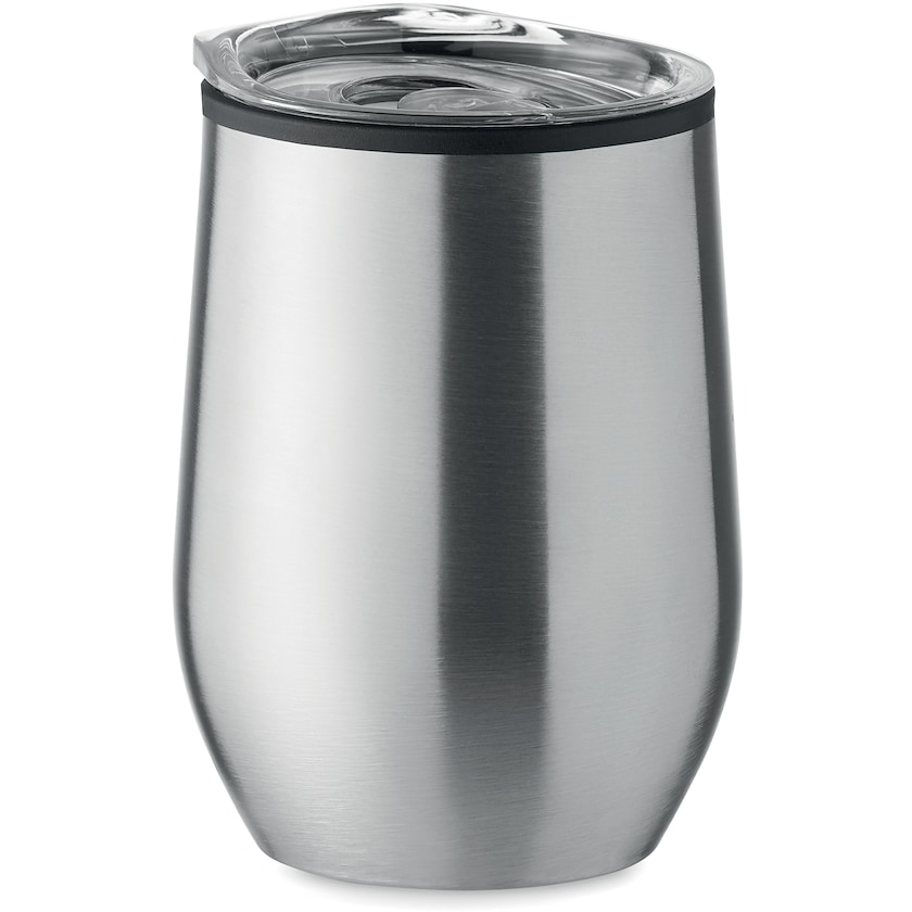 Liten termosmugg av rostfritt stål. Muggen har dubbla väggar som gör att drycken hålls varm länge. Diskmaskinssäker.