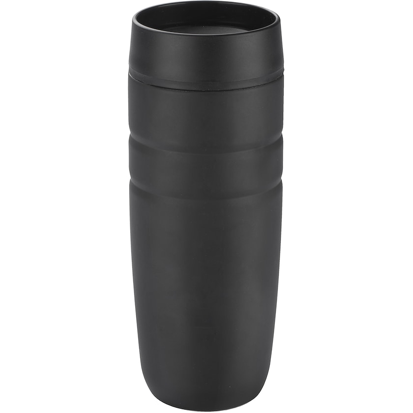 Helsvart termosmugg av rostfritt stål. Muggen rymmer 35 cl och håller varm dryck varm i upp till 13 timmar. Levereras i en naturfärgad pappkartong.