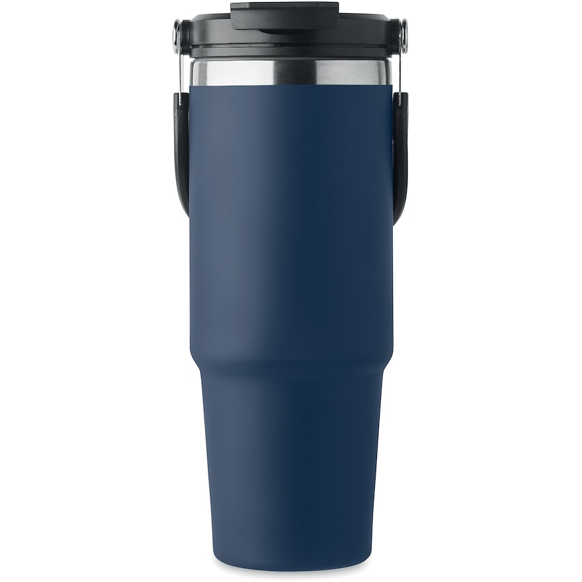 Stort termosmugg med bärhandtag. Mirabelle har dubbla väggar och är tillverkad av 90% återvunnet rostfritt stål och 10% vanligt rostfritt stål. Locket har ett inre sugrör, vikbart munstycke och dricksöppning.
