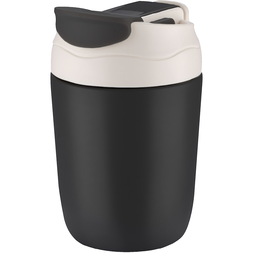 Funktionell termosmugg med vacker design. Muggen är tillverkad av rostfritt stål och högkvalitativ plast. Dryck hålls varm i upp till 9 timmar. Locket innehåller en drickpip som är lätt att dricka ur.