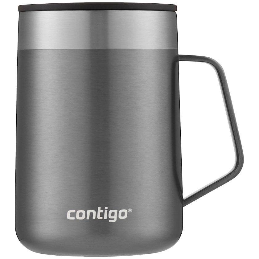 Termosmugg av rostfritt stål från Contigo. Muggen är vakuumisolerad vilket gör att dryck hålls varm i 5 timmar och kall i minst 15 timmar. Locket har ett skjutmunstycke som förhindrar spill och läckage. Passar de flesta kaffemaskiner. Lätt att rengöra. Bruksanvisning medföljer.