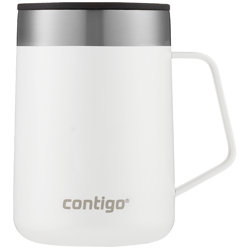 Termosmugg av rostfritt stål från Contigo. Muggen är vakuumisolerad vilket gör att dryck hålls varm i 5 timmar och kall i minst 15 timmar. Locket har ett skjutmunstycke som förhindrar spill och läckage. Passar de flesta kaffemaskiner. Lätt att rengöra. Bruksanvisning medföljer.